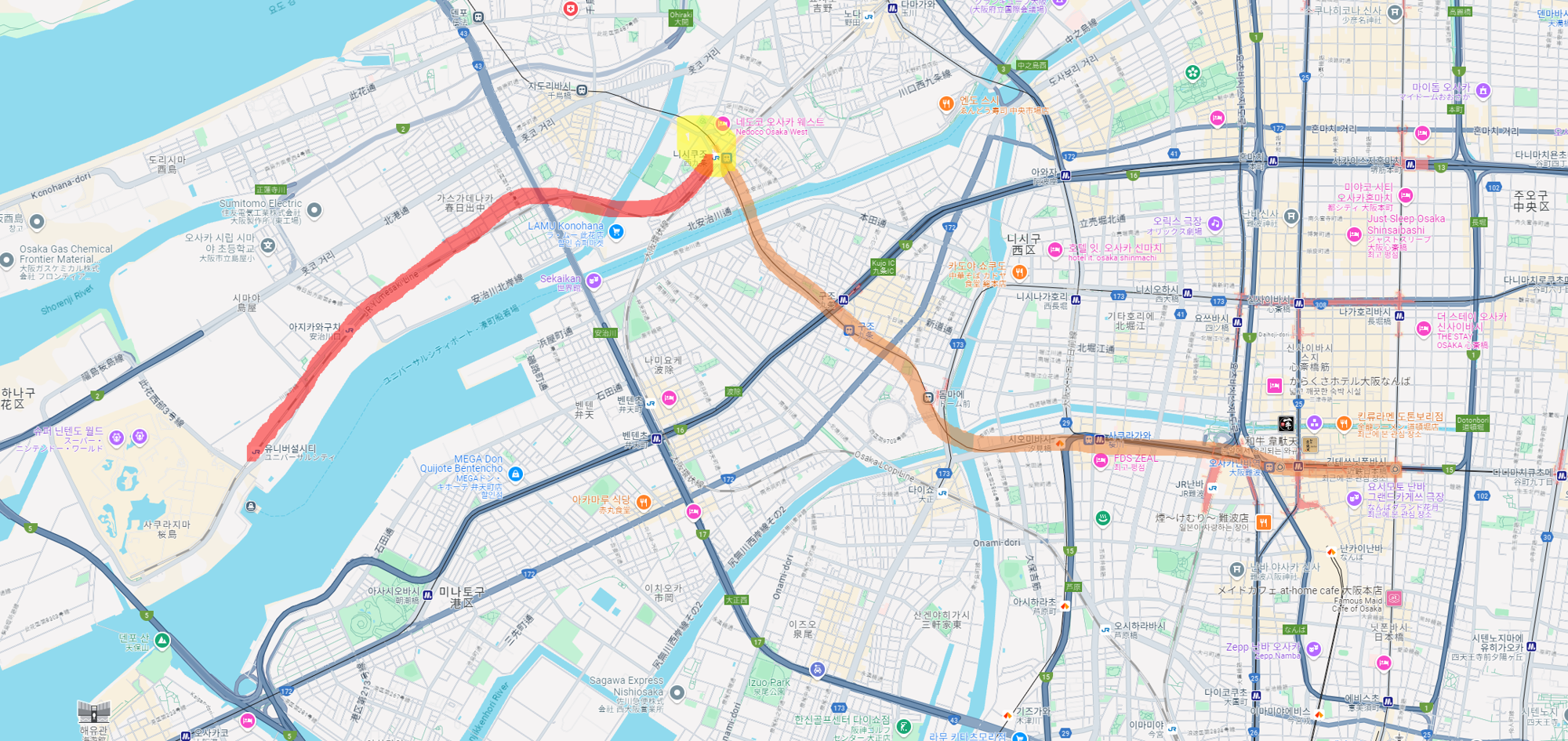 기억하세요! "니시쿠조역"에서 "JR유메사키선"으로 환승을 해야합니다.